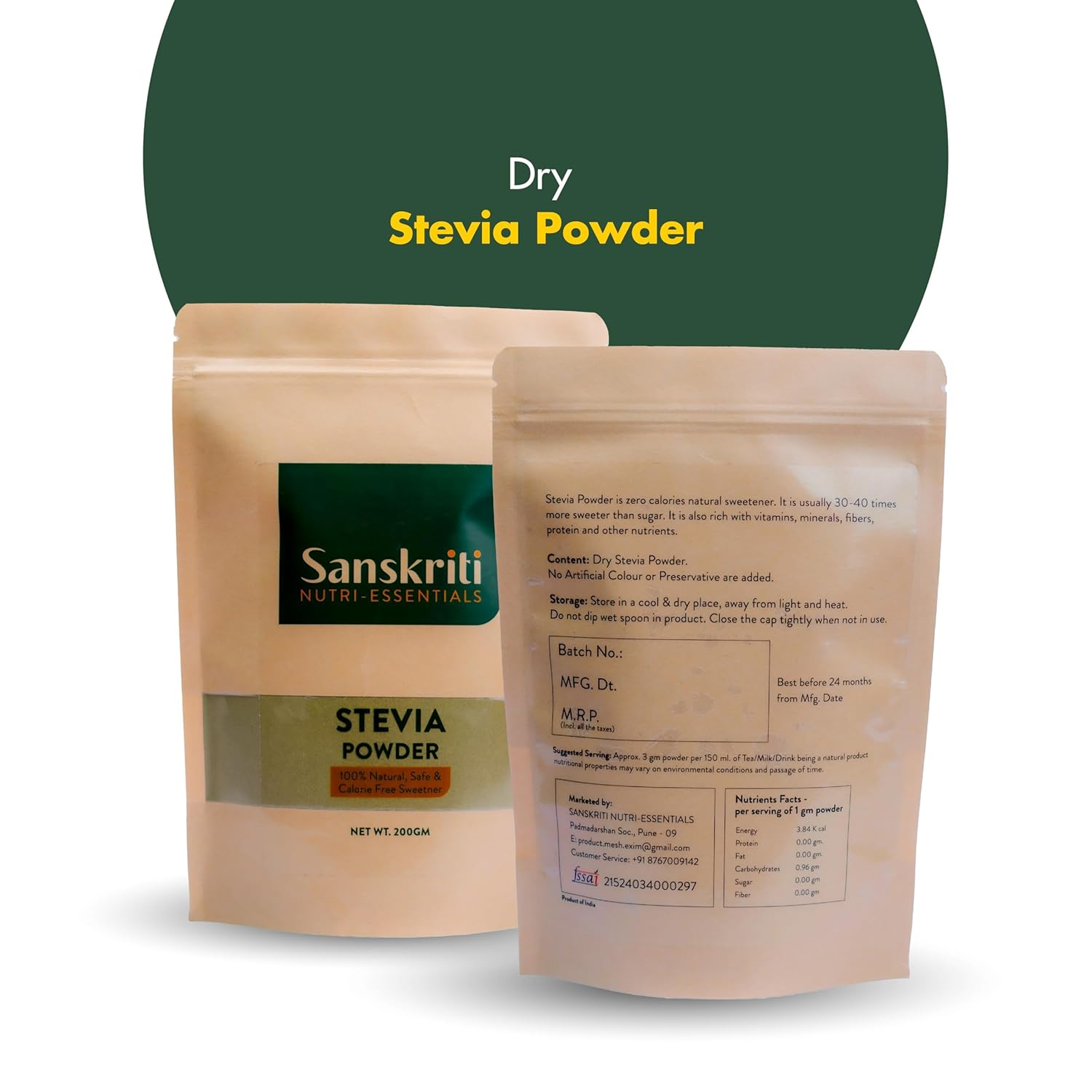 100% Pure & Natural Stevia Powder: Made from dried green stevia leaves with no chemicals, additives, or preservatives—just clean, plant-based sweetness.